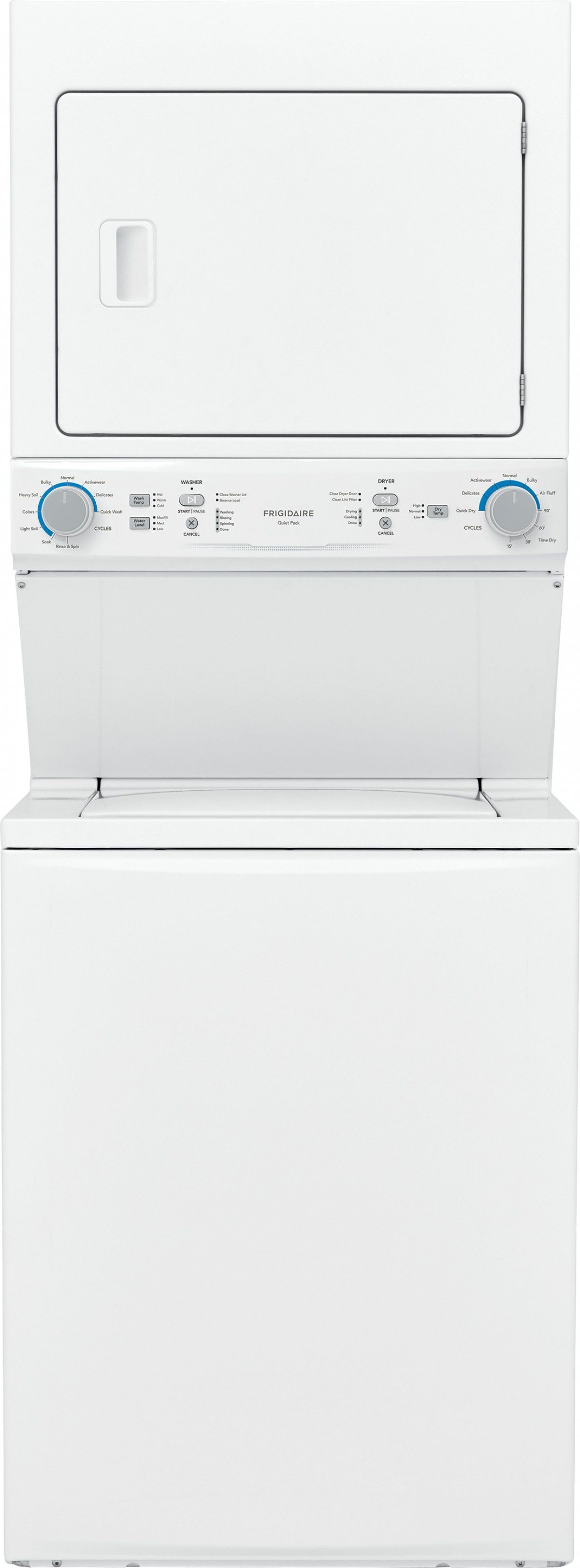 The Frigidaire Laundry Center with 3.9 Cu. Ft. Washer and 5.5 Cu. Ft. Dryer provides a big-time clean in a tight space with the movement of the powerful agitator. The MaxFill® option option allows for maximum water level for the selected cycle and the spacious capacity of the washer allows you to wash a king-sized comforter.Read More