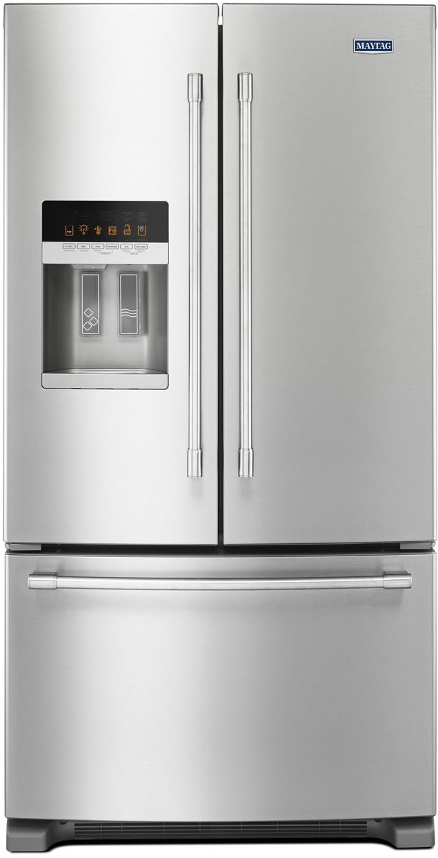 Crushed ice at your fingertips, a PowerCold® feature that quickly cools down items, and a swanky exterior make this refrigerator the perfect fit for your kitchen. Fingerprint-resistant stainless steels means you spend less time cleaning and more time preparing the perfect snack. Freshlock™ crispers keep your ingredients fresher longer, which means fewer trips to the grocery store to restock items gone bad. And like all Maytag® appliances, this refrigerator is designed, engineered, and assembled in the U.S.A., preserving not just your food but American manufacturing too. Stay cool with this beautiful refrigerator.