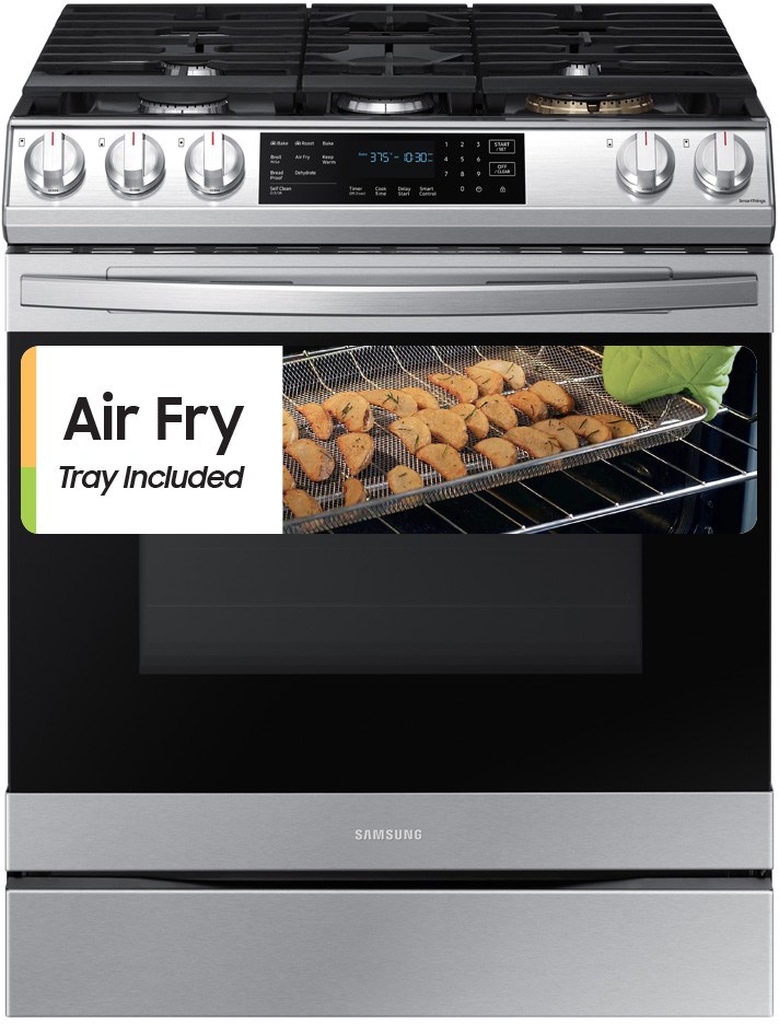 The Samsung Front Control Slide-In Gas Range with Air Fry is fully Wi-Fi connected and voice enabled, making it easy to create delicious and healthier meals for your family.Read More